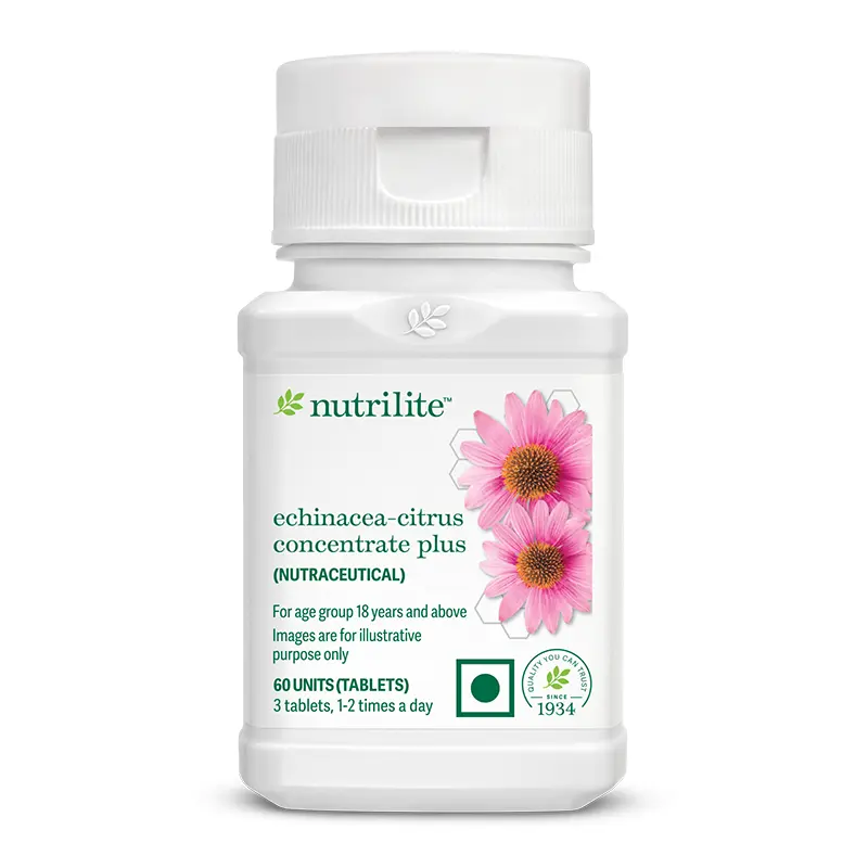 NUTRILITE® Echinacea-citrus Concentrate Plus presents the “power of three” – Echinacea blend, comprising Echinacea purpurea root, Echinacea aerial parts, and Echinacea angustifolia root.